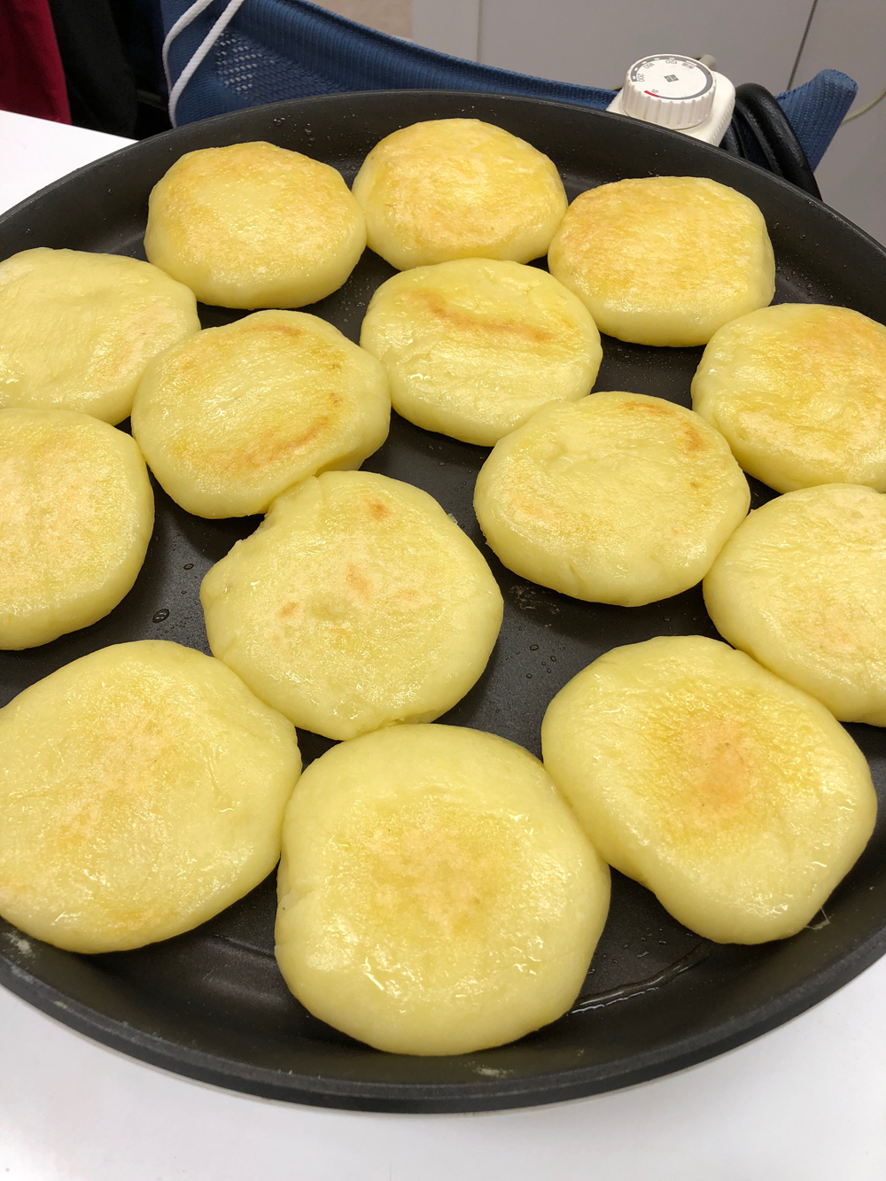 患者さんから手作りのじゃがいも餅を頂きました。早速ホットプレートでこんがり焼いて美味しくいただきました。